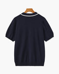 A sophisticated navy polo featuring crisp white accents, perfect for effortless transitions from casual outings to smart occasions. Crafted with a premium knit fabric, it offers a flattering fit while maintaining all-day comfort. Pair it with tailored trousers or casual chinos for a refined look.